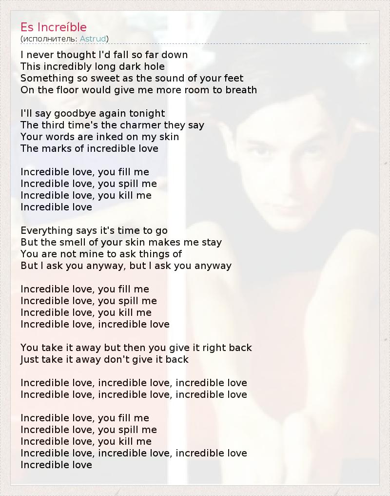Невероятная любовь, невероятная любовь, невероятная любовь.