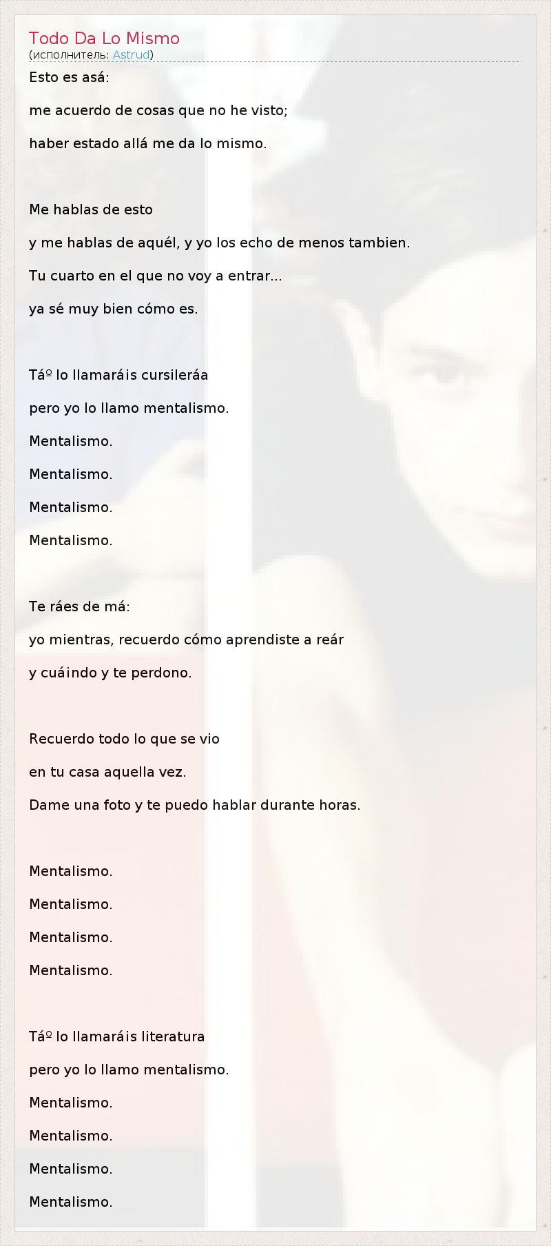 А как ты думаешь, о чем песня "Todo Da Lo Mismo" ?