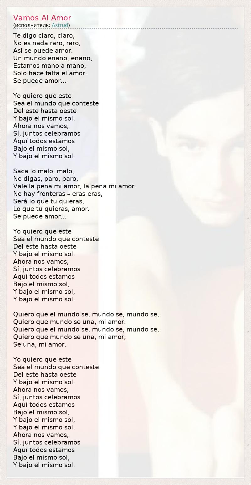 А как ты думаешь, о чем песня "Vamos Al Amor" ?
