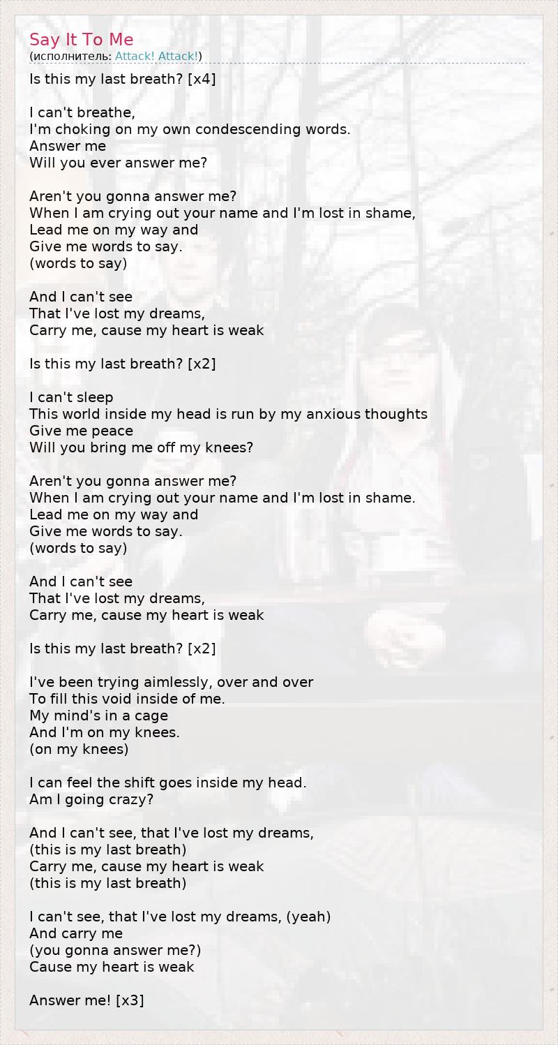 А как ты думаешь, о чем песня "Say It To Me" ?