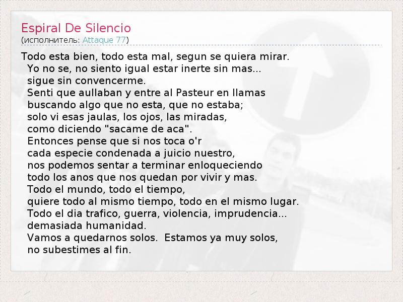 А как ты думаешь, о чем песня "Espiral De Silencio" ?