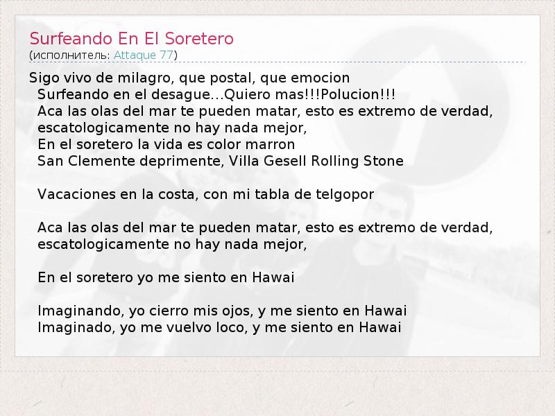 А как ты думаешь, о чем песня "Surfeando En El Soretero" ?