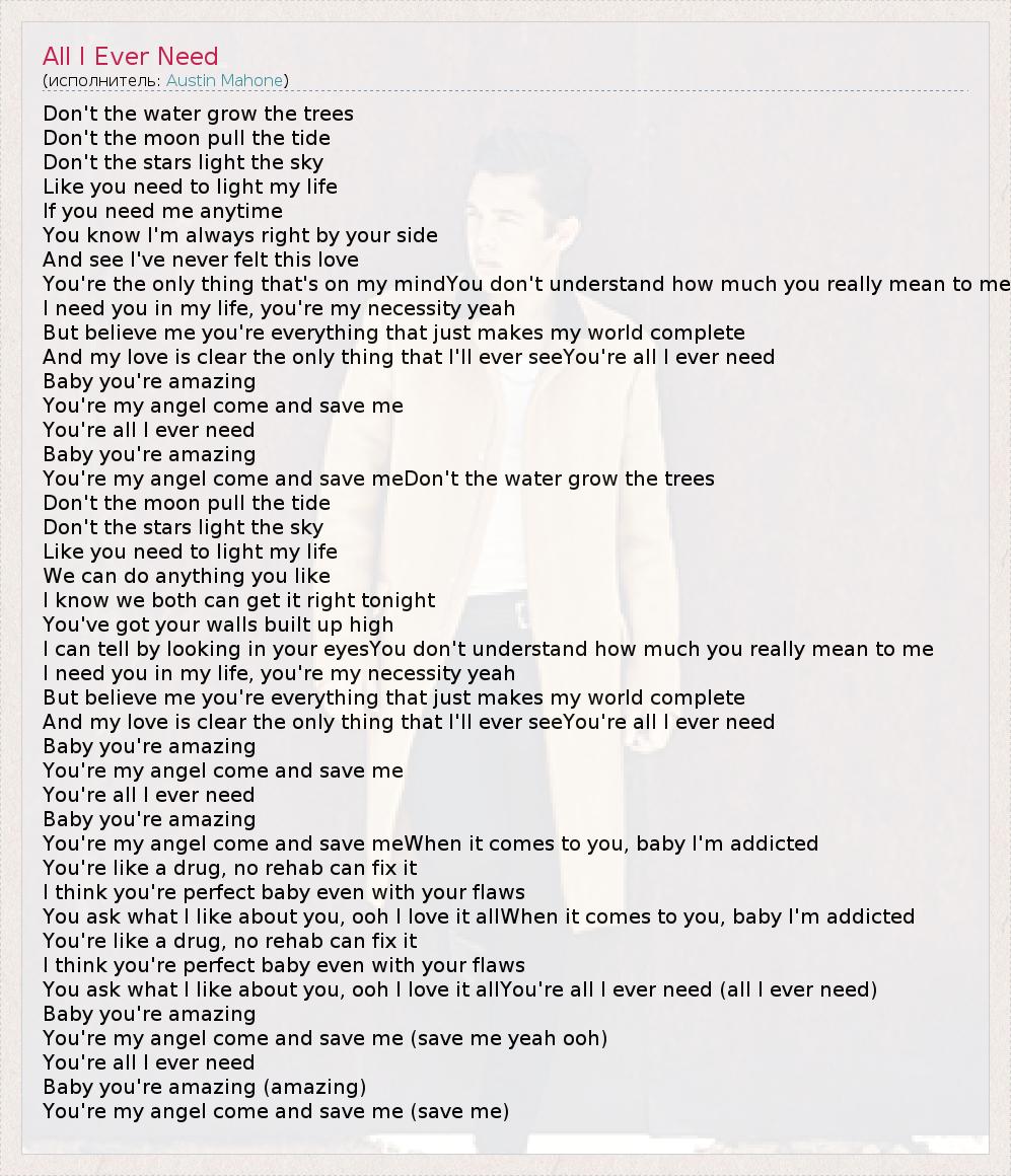 А как ты думаешь, о чем песня "All I Ever Need" ?