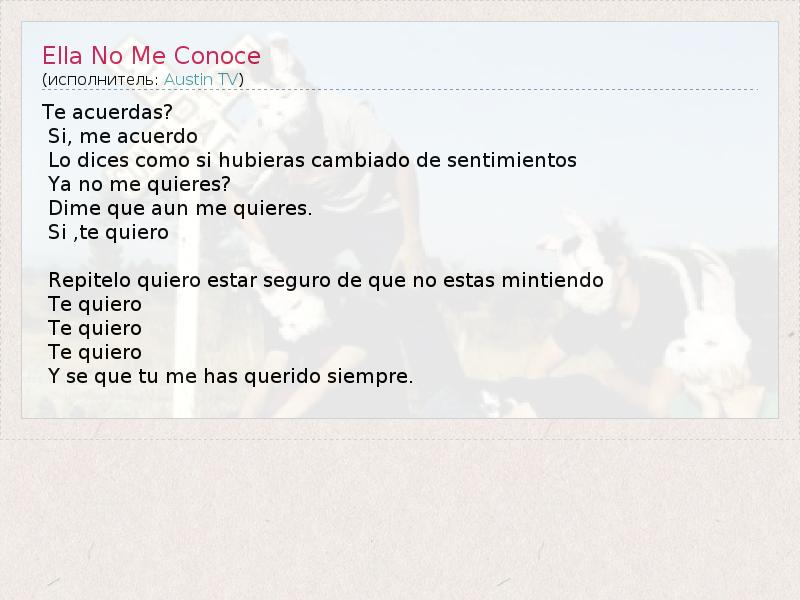 А как ты думаешь, о чем песня "Ella No Me Conoce" ?