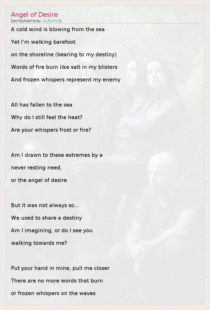 А как ты думаешь, о чем песня "Angel of Desire" ?