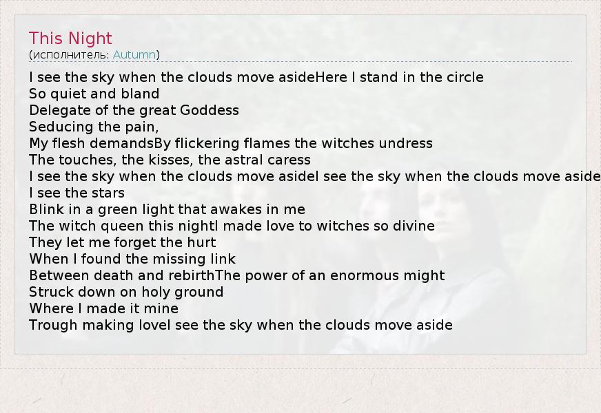 А как ты думаешь, о чем песня "This Night" ?