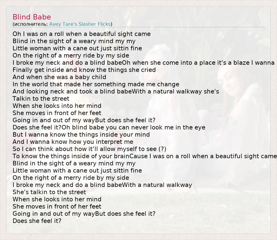 А как ты думаешь, о чем песня "Blind Babe" ?