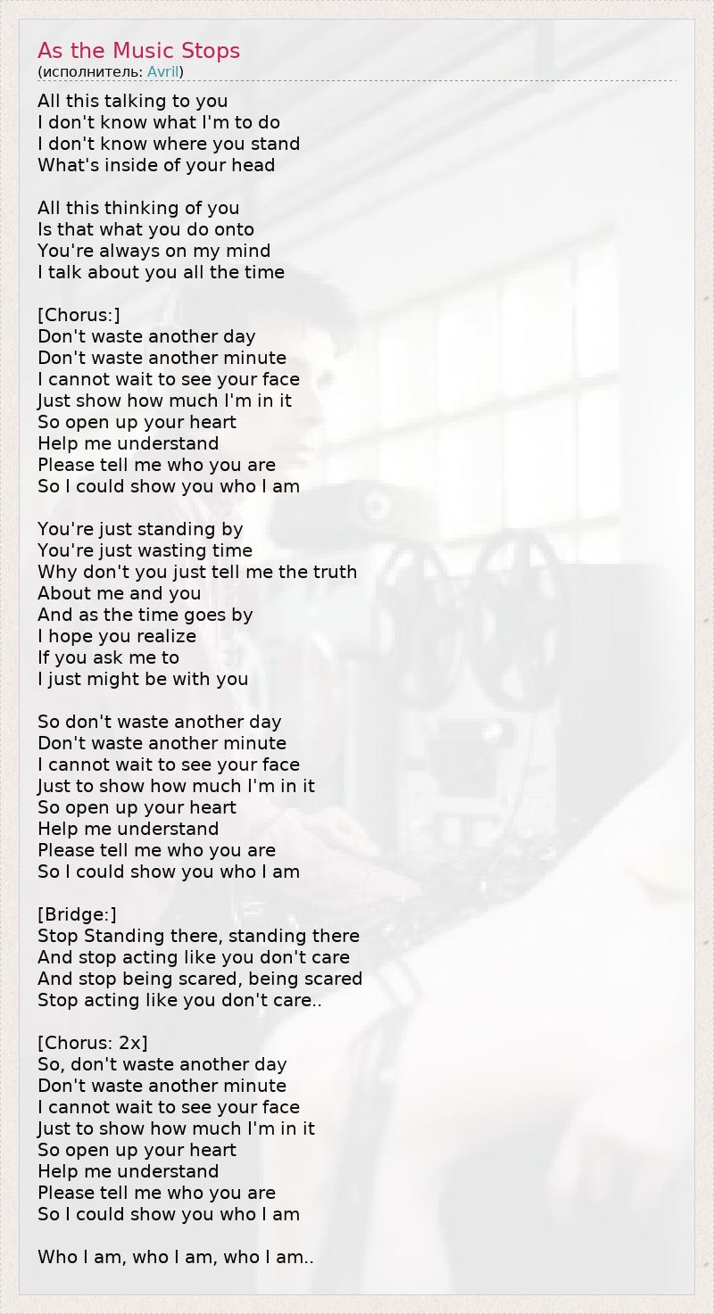 А как ты думаешь, о чем песня "As the Music Stops" ?