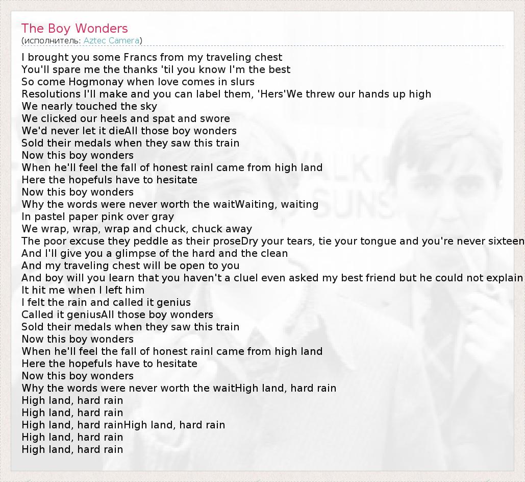 А как ты думаешь, о чем песня "The Boy Wonders" ?