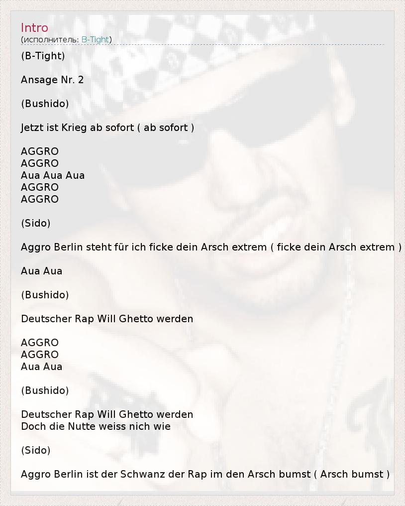 Aggro Berlin steht für ich ficke dein Arsch extrem ( ficke dein Arsch extrem )