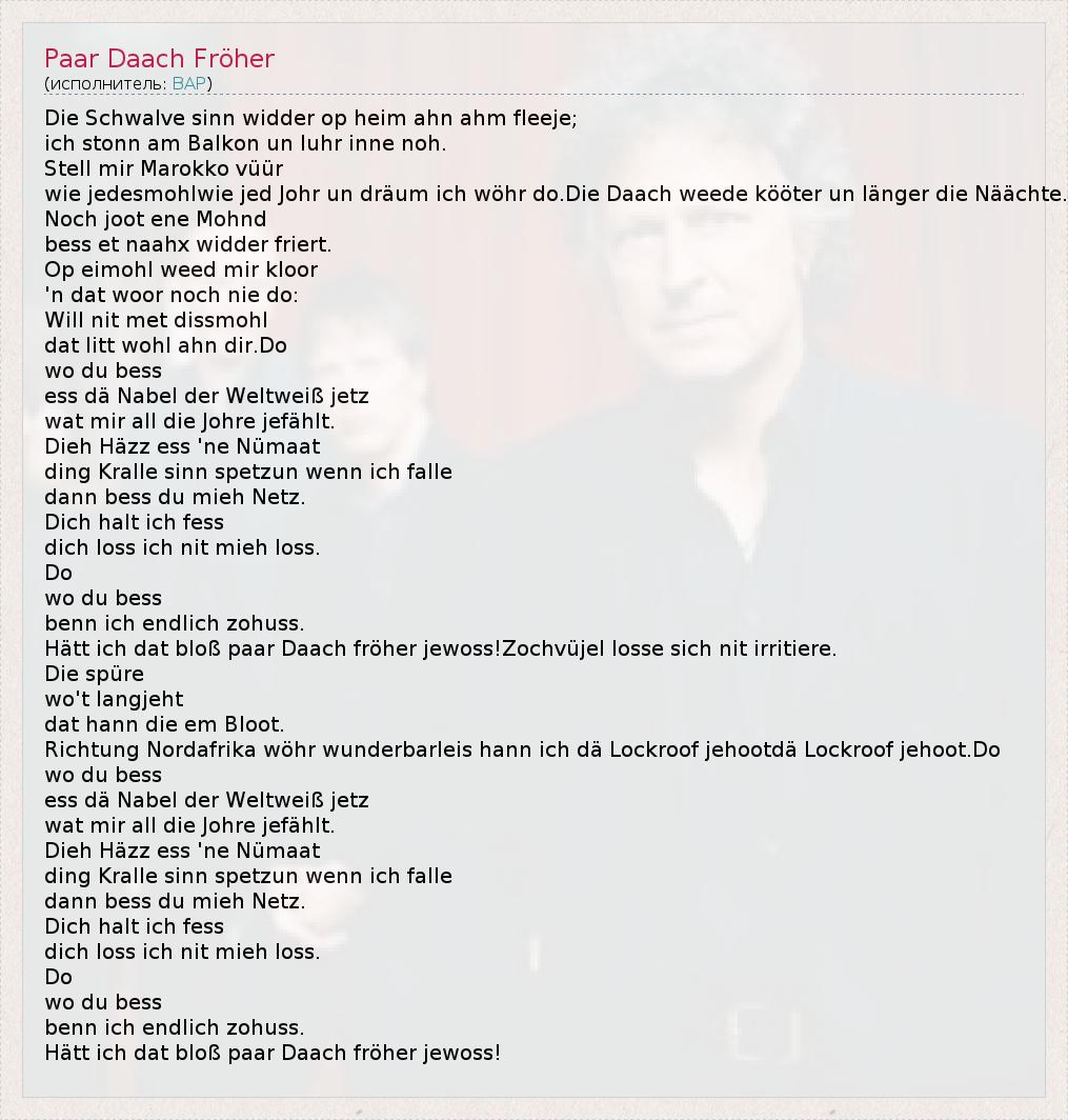 А как ты думаешь, о чем песня "Paar Daach Fröher" ?