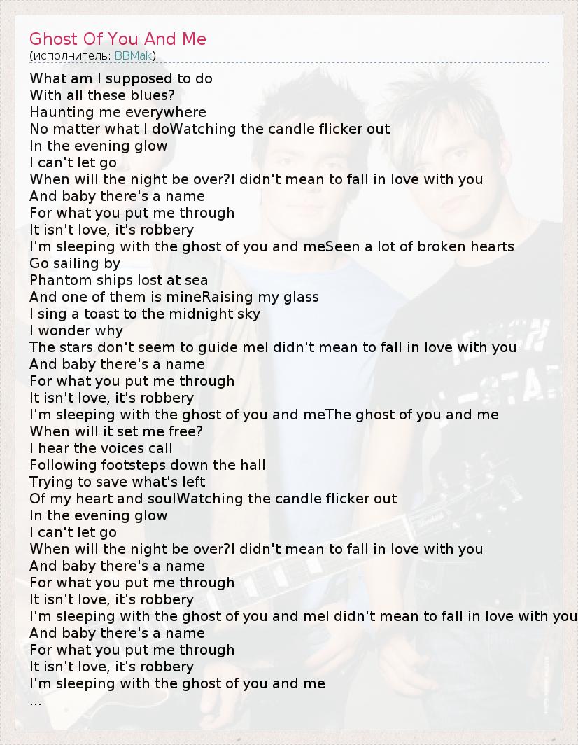 I'm sleeping with the ghost of you and meThe ghost of you and me