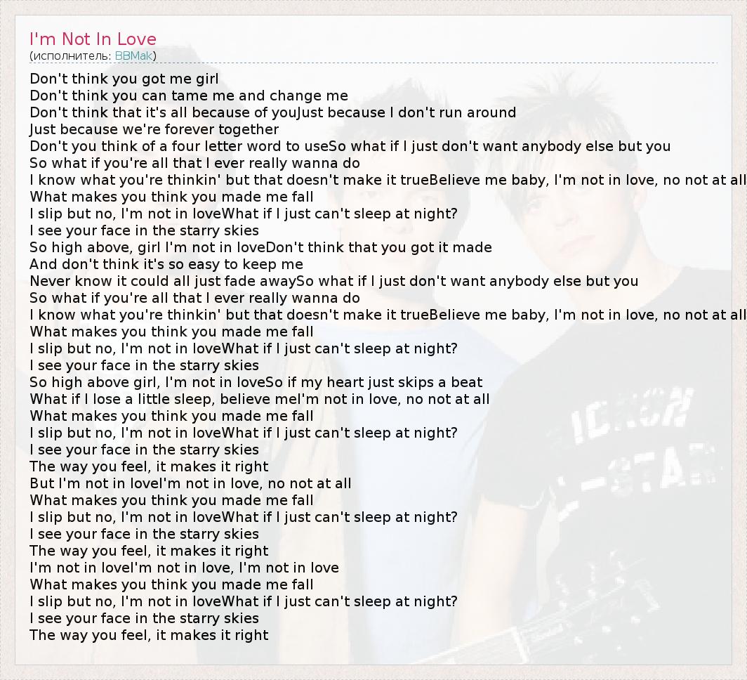 А как ты думаешь, о чем песня "I'm Not In Love" ?