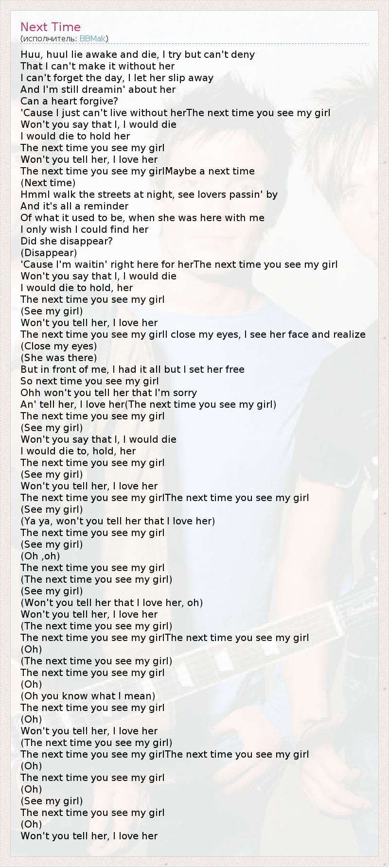 'Cause I'm waitin' right here for herThe next time you see my girl