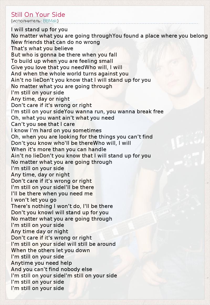 А как ты думаешь, о чем песня "Still On Your Side" ?