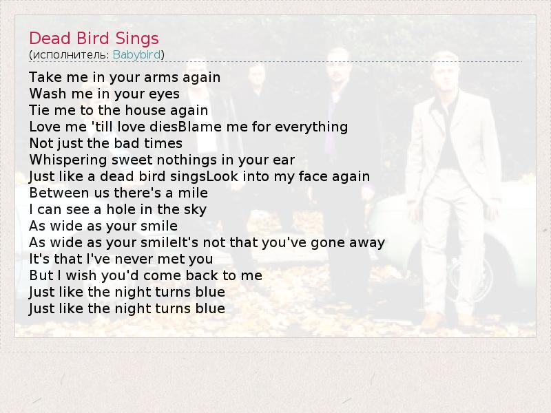 А как ты думаешь, о чем песня "Dead Bird Sings" ?