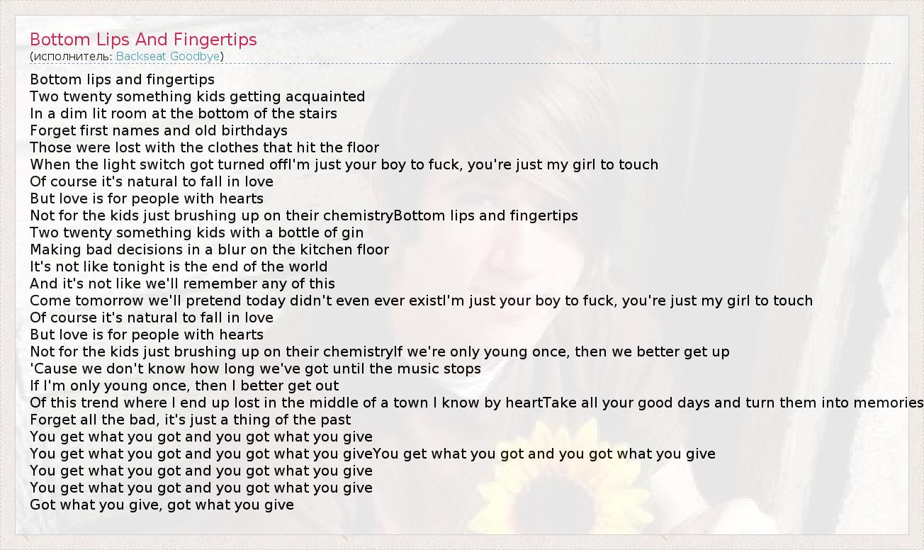 А как ты думаешь, о чем песня "Bottom Lips And Fingertips" ?