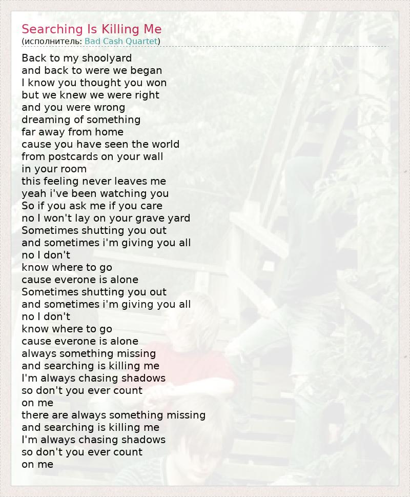 А как ты думаешь, о чем песня "Searching Is Killing Me" ?