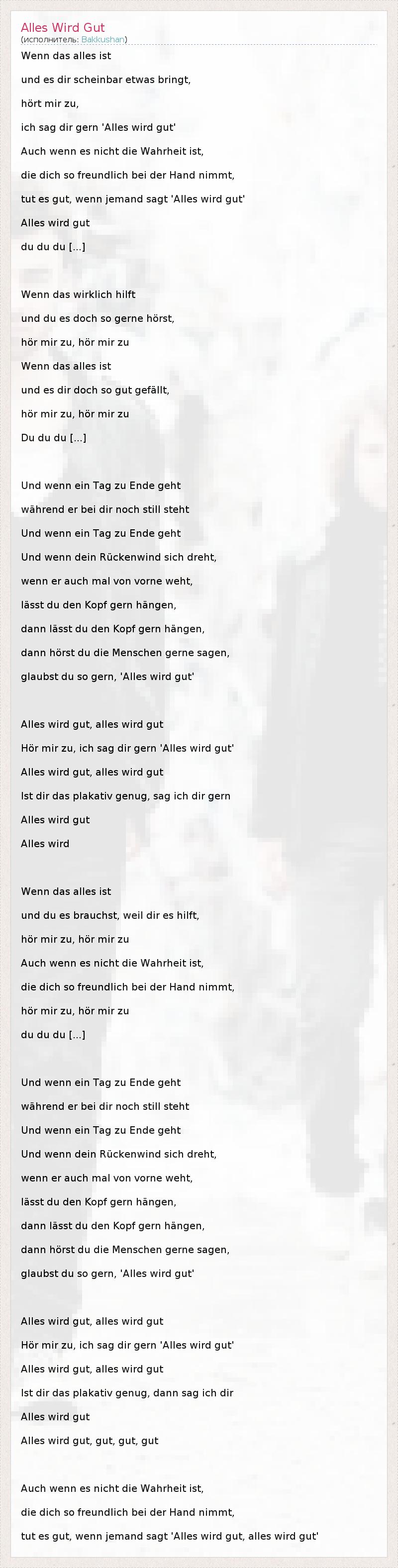 А как ты думаешь, о чем песня "Alles Wird Gut" ?