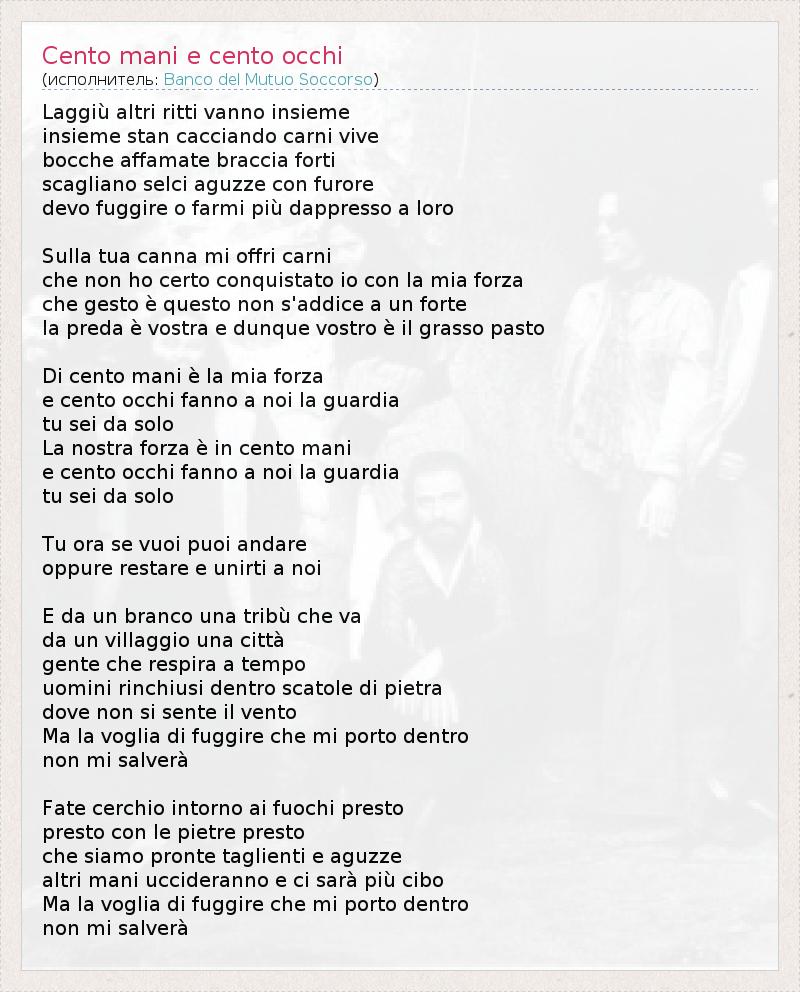 А как ты думаешь, о чем песня "Cento mani e cento occhi" ?