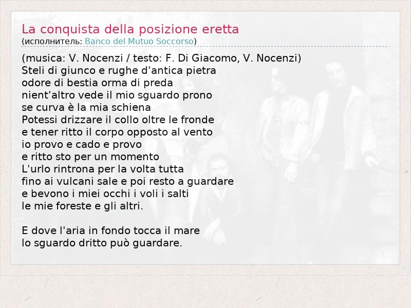 ГлавнаяИсполнителиBanco del Mutuo SoccorsoLa conquista della posizione eretta