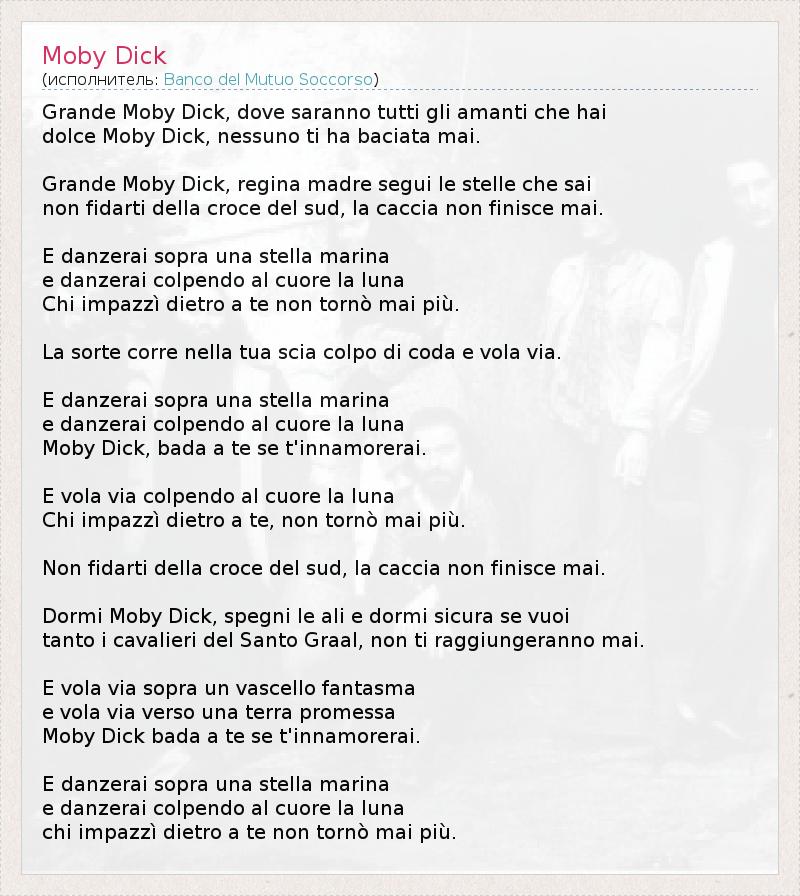 Dolce Моби Дик, Nessuno ти га baciata МАИ.
