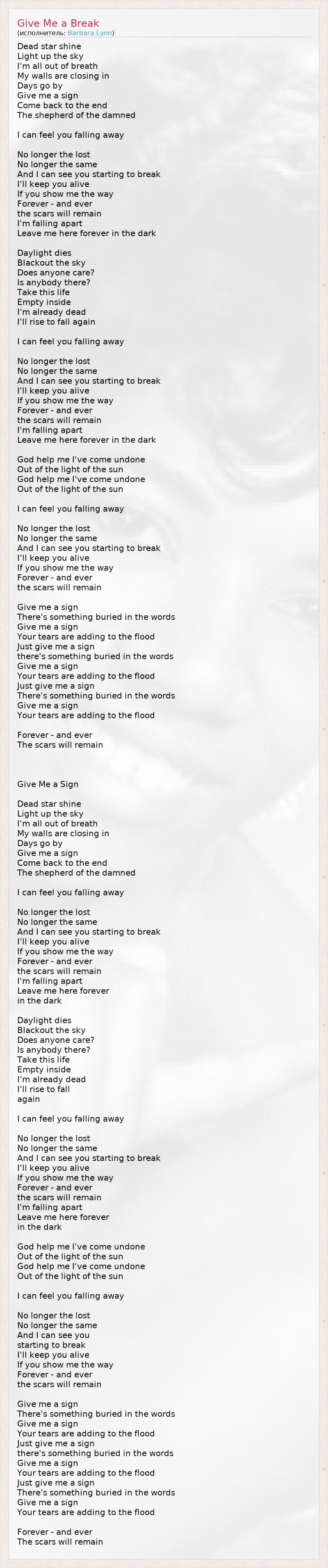 А как ты думаешь, о чем песня "Give Me a Break" ?