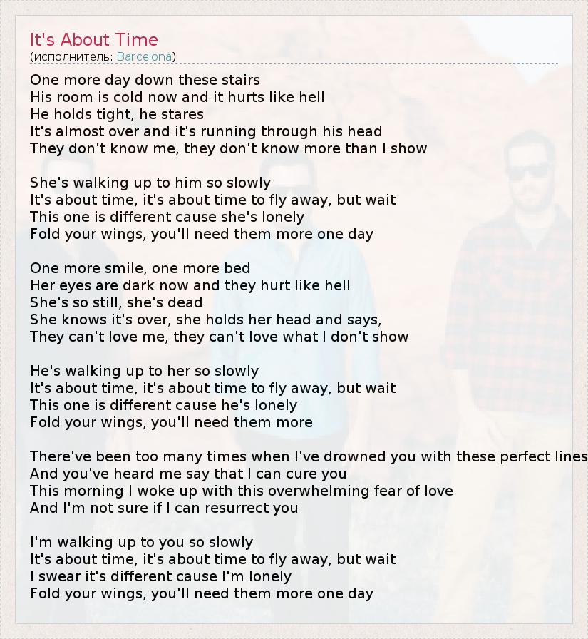 Еще один день, как спуск вниз. В его комнате холодно теперь, и это адски больно, Но он держится крепко и живет. Всё почти закончилось и в его голове проносится мысль: Они не знают меня, они не знают больше, чем я показываю Она подходит к нему так медленно, Пора, уже пора улетать, но подожди...! Но это другое, ведь она одинока. Сложи свои крылья - однажды они тебе будут нужнее. Еще одна улыбка, еще одна кровать, Глаза потемнели и чертовски сильно болят. Она так неподвижна - она мертва... Она знает, что все кончено, но держит голову высоко и говорит: Они не могут любить меня, они не могут любить то, чего я не показываю. Он подходит к ней так медленно, Пора, уже пора улетать, но подожди...! Но это другое, ведь он одинок. Сложи свои крылья - однажды они тебе будут нужнее. Уже много раз я топил тебя этими совершенными линиями. И хотя ты слышала от меня, что я могу тебя вылечить, Этим утром я проснулся с непреодолимым страхом любви, И я не уверен, что смогу тебя воскресить. Я иду к тебе так медленно, Пора, уже пора улетать, но подожди...! Клянусь, что это не то же самое, ведь я одинок. Сложите свои крылья - однажды они вам будут нужнее...