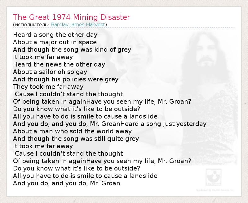А как ты думаешь, о чем песня "The Great 1974 Mining Disaster" ?