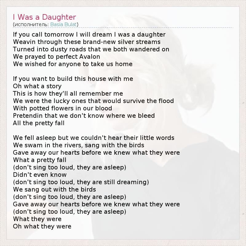 А как ты думаешь, о чем песня "I Was a Daughter" ?