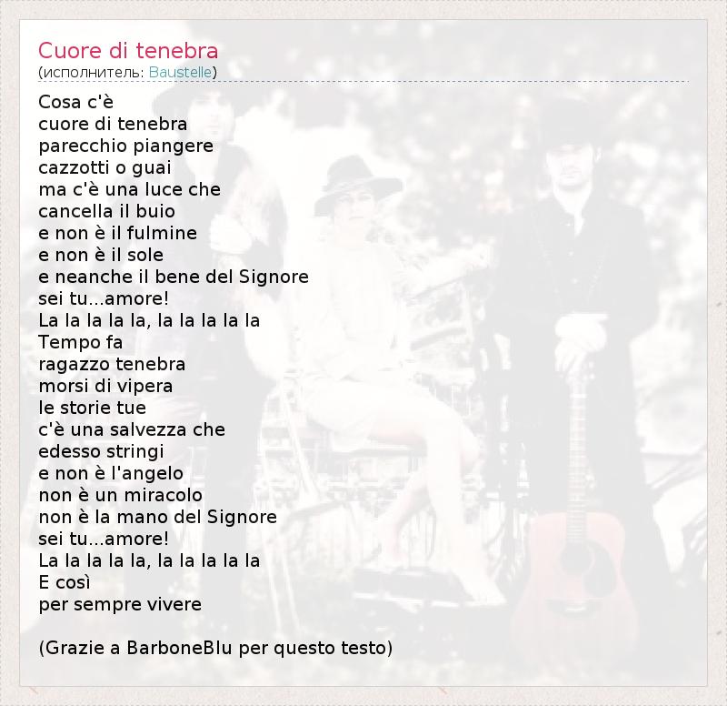 А как ты думаешь, о чем песня "Cuore di tenebra" ?