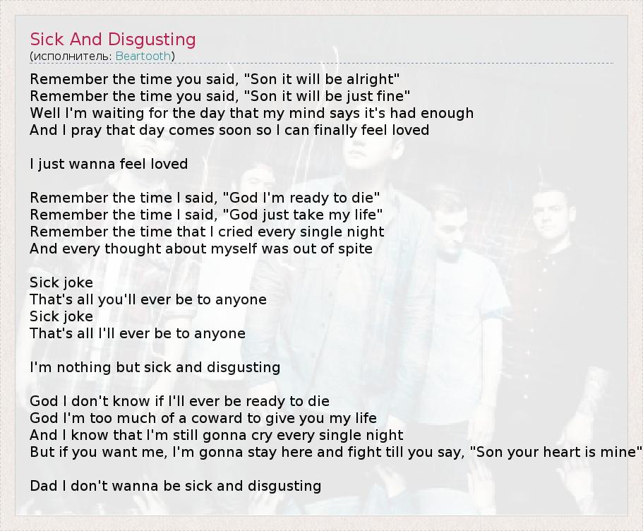 А как ты думаешь, о чем песня "Sick And Disgusting" ?