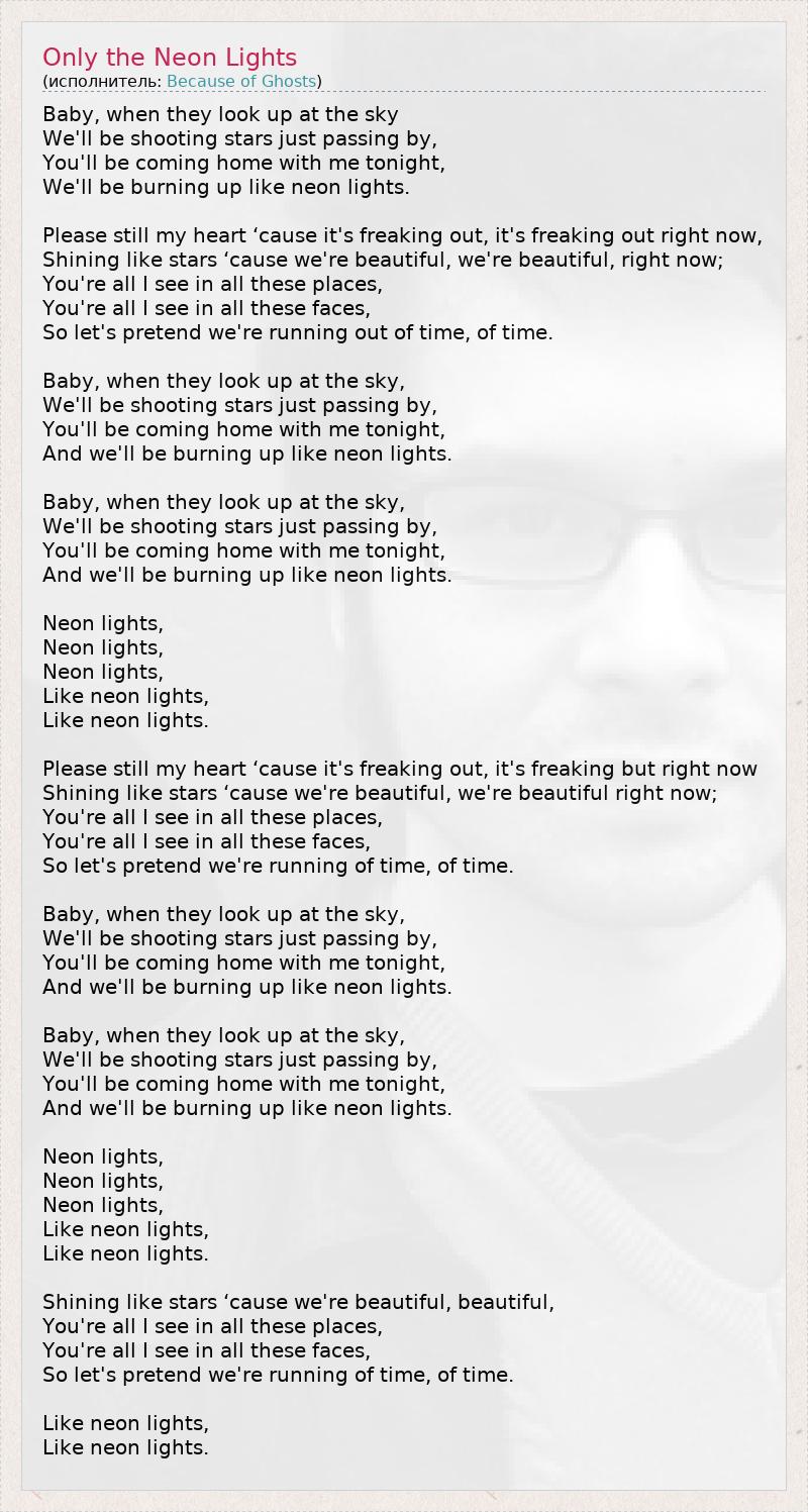 А как ты думаешь, о чем песня "Only the Neon Lights" ?