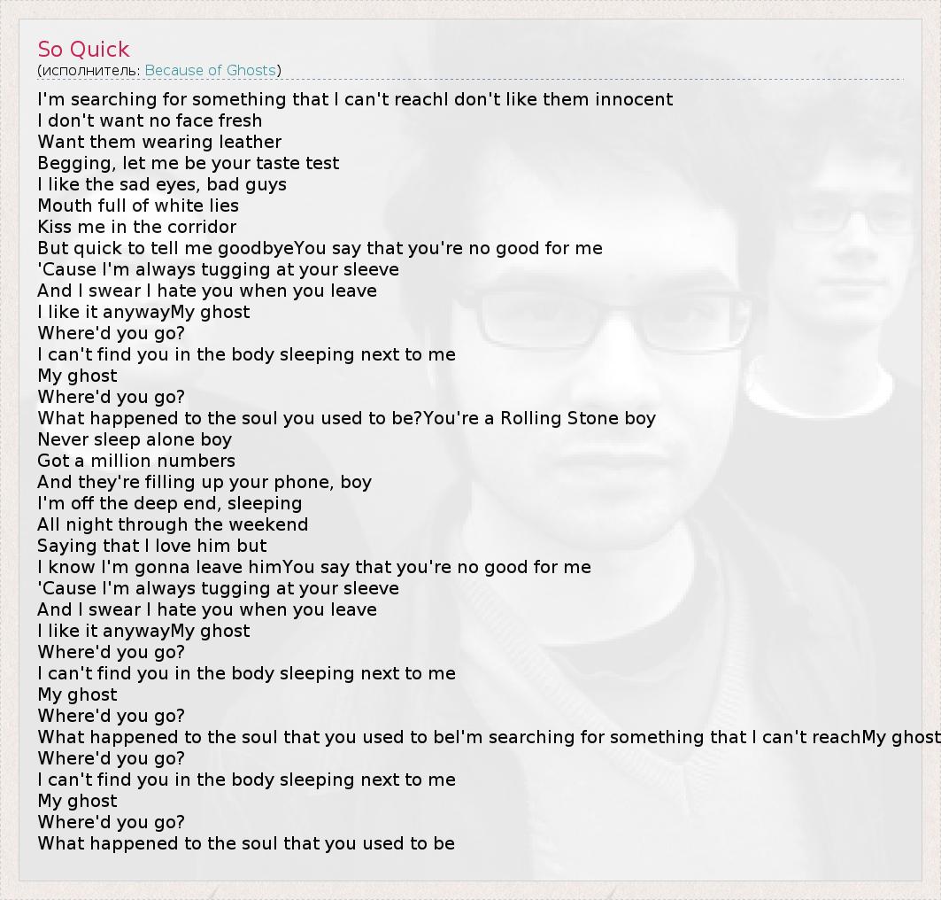 А как ты думаешь, о чем песня "So Quick" ?
