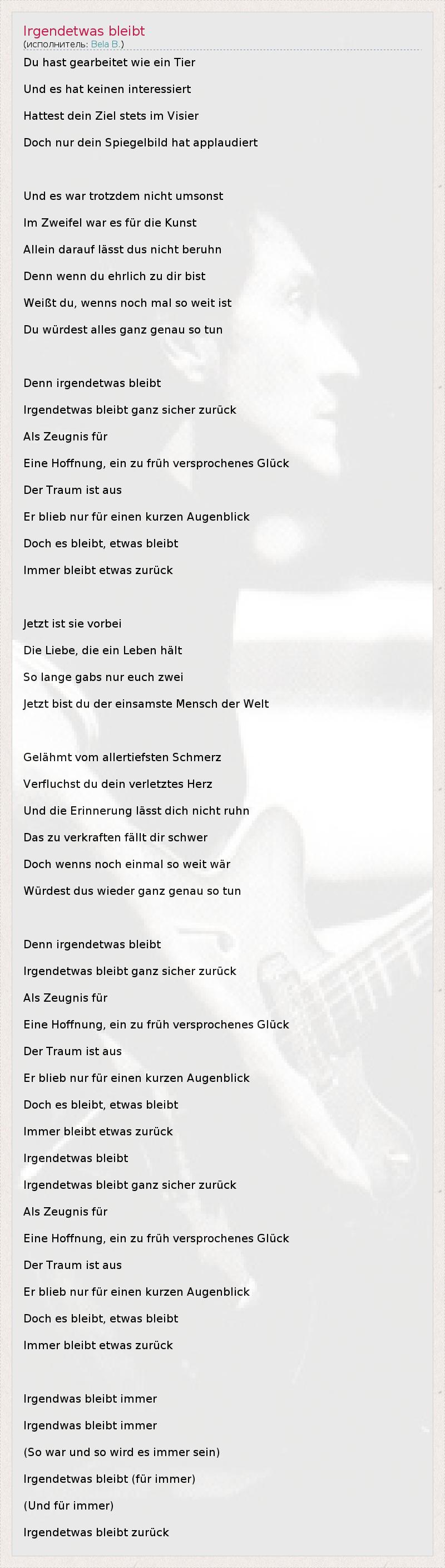 А как ты думаешь, о чем песня "Irgendetwas bleibt" ?