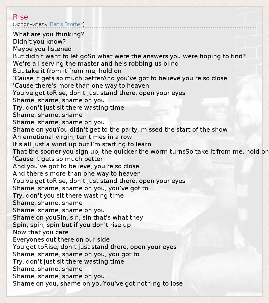 Это интересно:Ben's Brother — группа из Великобритании.Образовались в 2006 году.Состав:Jamie HartmanKiris HoustonDave HatteeTim VanderkillDaniel McKinnaДискография:2007 – «Beta Male Fairytales» 2009 – «Battling Giants»