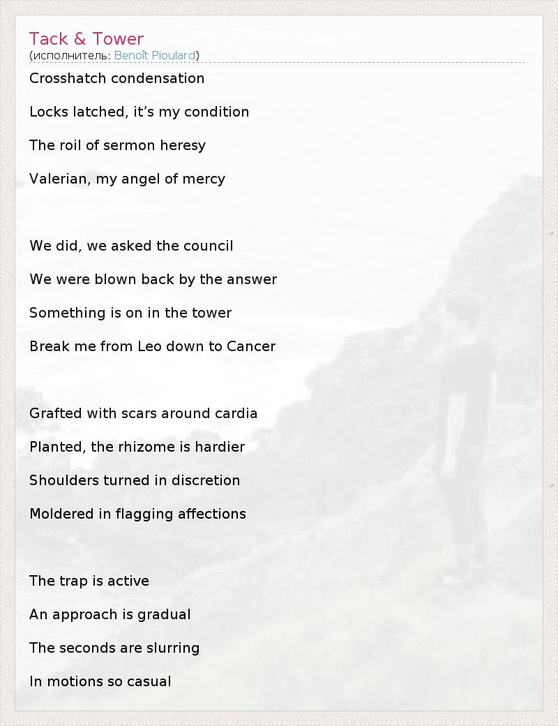 А как ты думаешь, о чем песня "Tack & Tower" ?