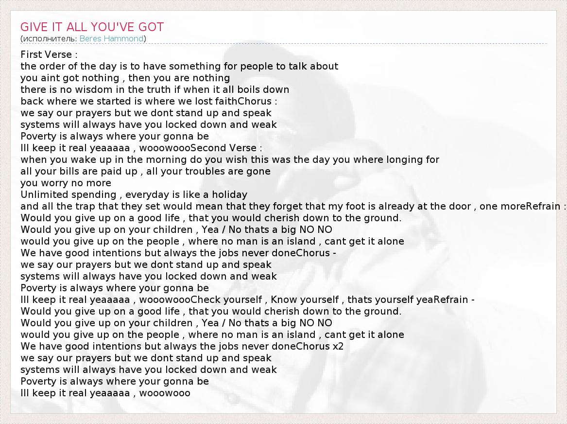 А как ты думаешь, о чем песня "GIVE IT ALL YOU'VE GOT" ?