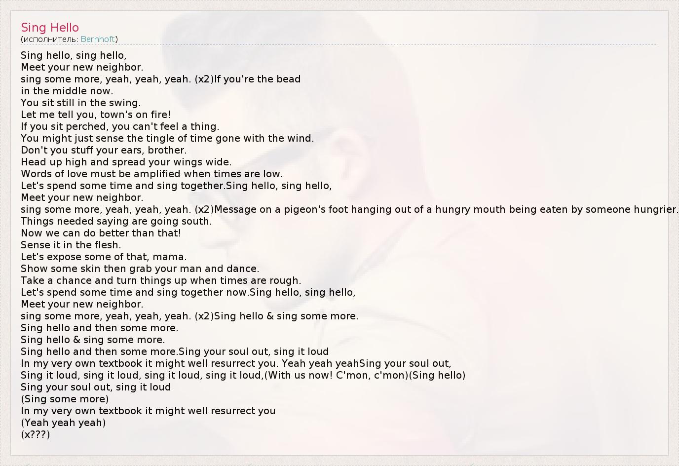 sing some more, yeah, yeah, yeah. (x2)Sing hello & sing some more.