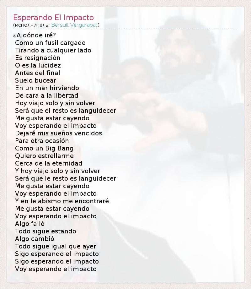 А как ты думаешь, о чем песня "Esperando El Impacto" ?