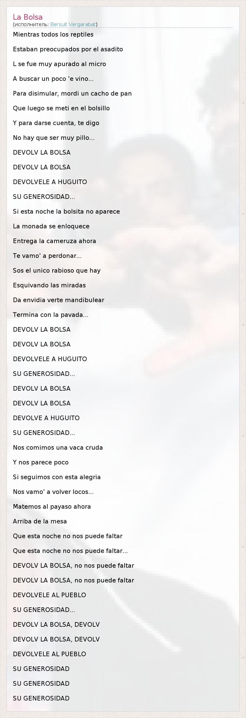 А как ты думаешь, о чем песня "La Bolsa" ?