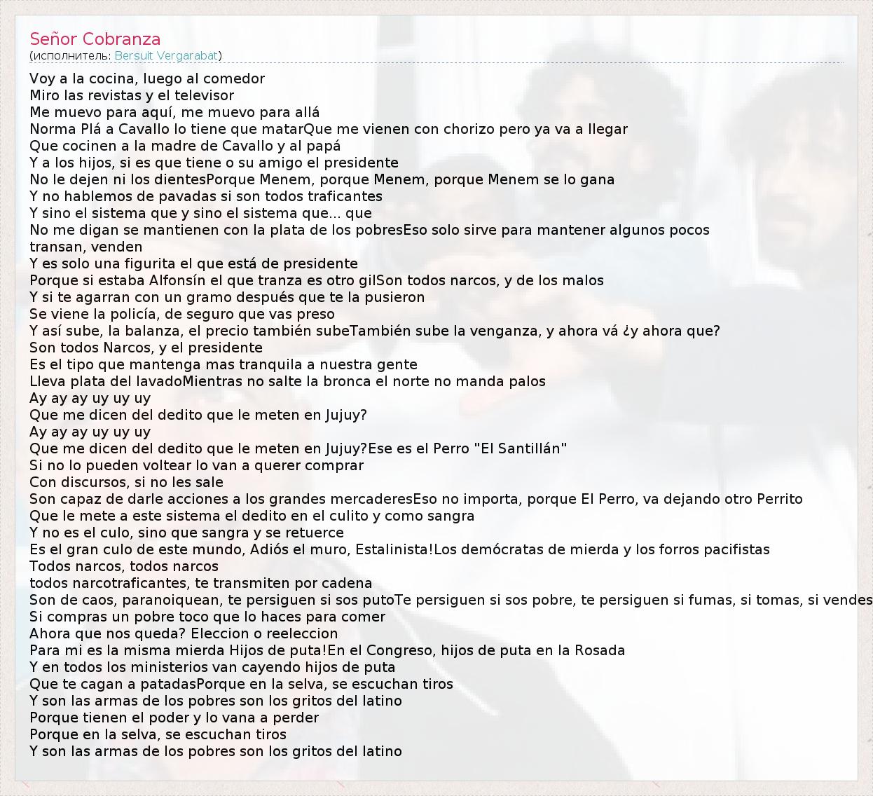 А как ты думаешь, о чем песня "Señor Cobranza" ?
