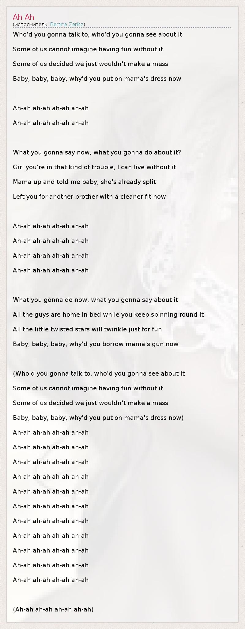 А как ты думаешь, о чем песня "Ah Ah" ?