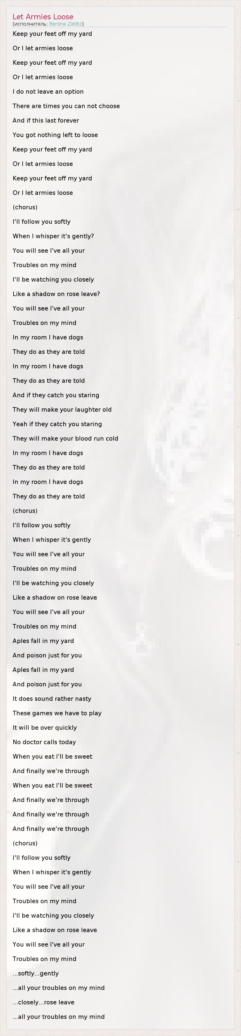 А как ты думаешь, о чем песня "Let Armies Loose" ?