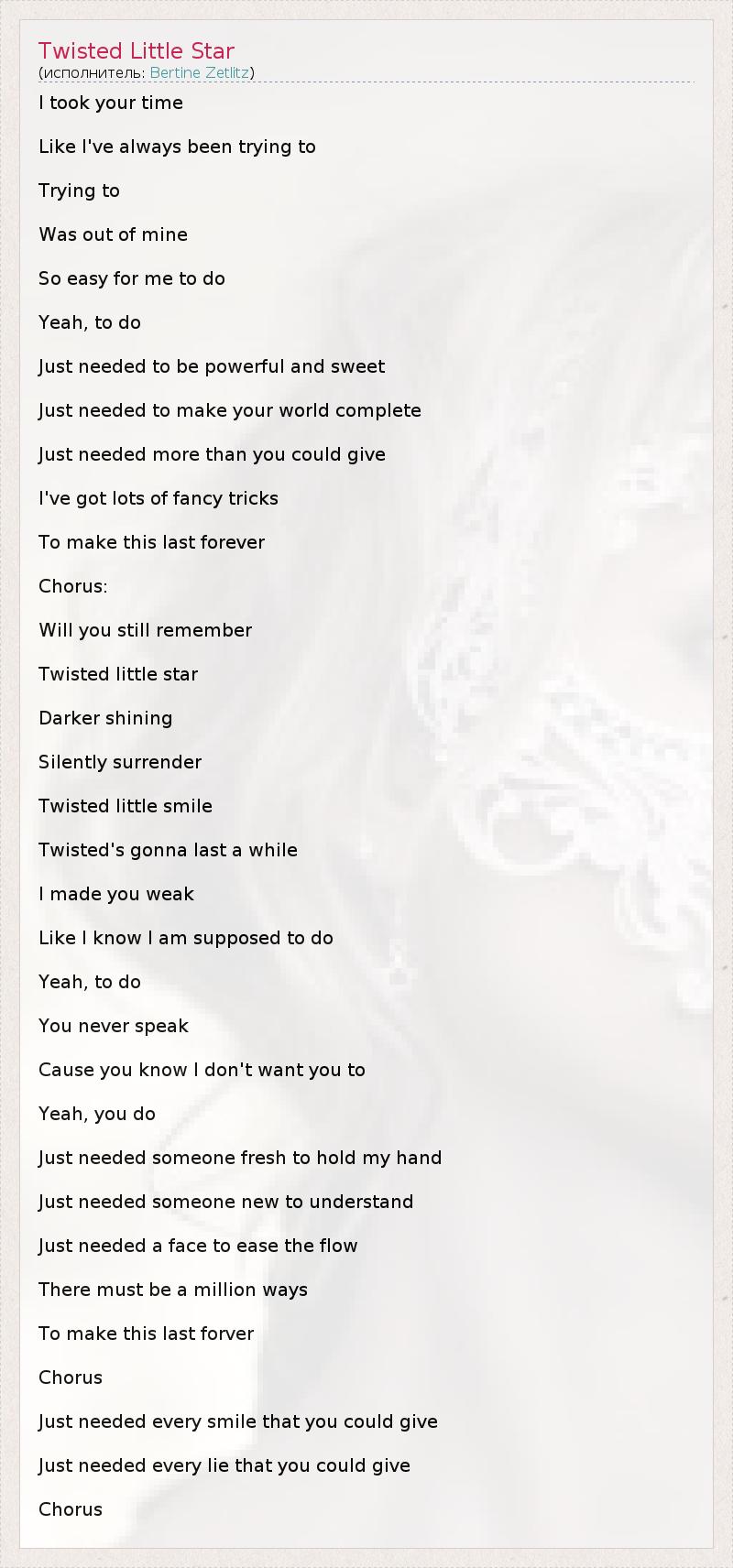 А как ты думаешь, о чем песня "Twisted Little Star" ?