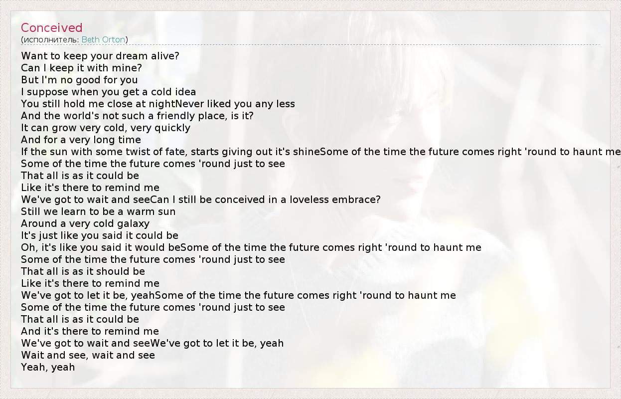 We've got to wait and seeCan I still be conceived in a loveless embrace?