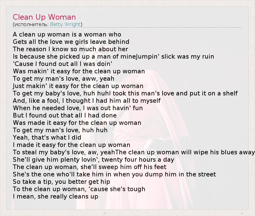 А как ты думаешь, о чем песня "Clean Up Woman" ?