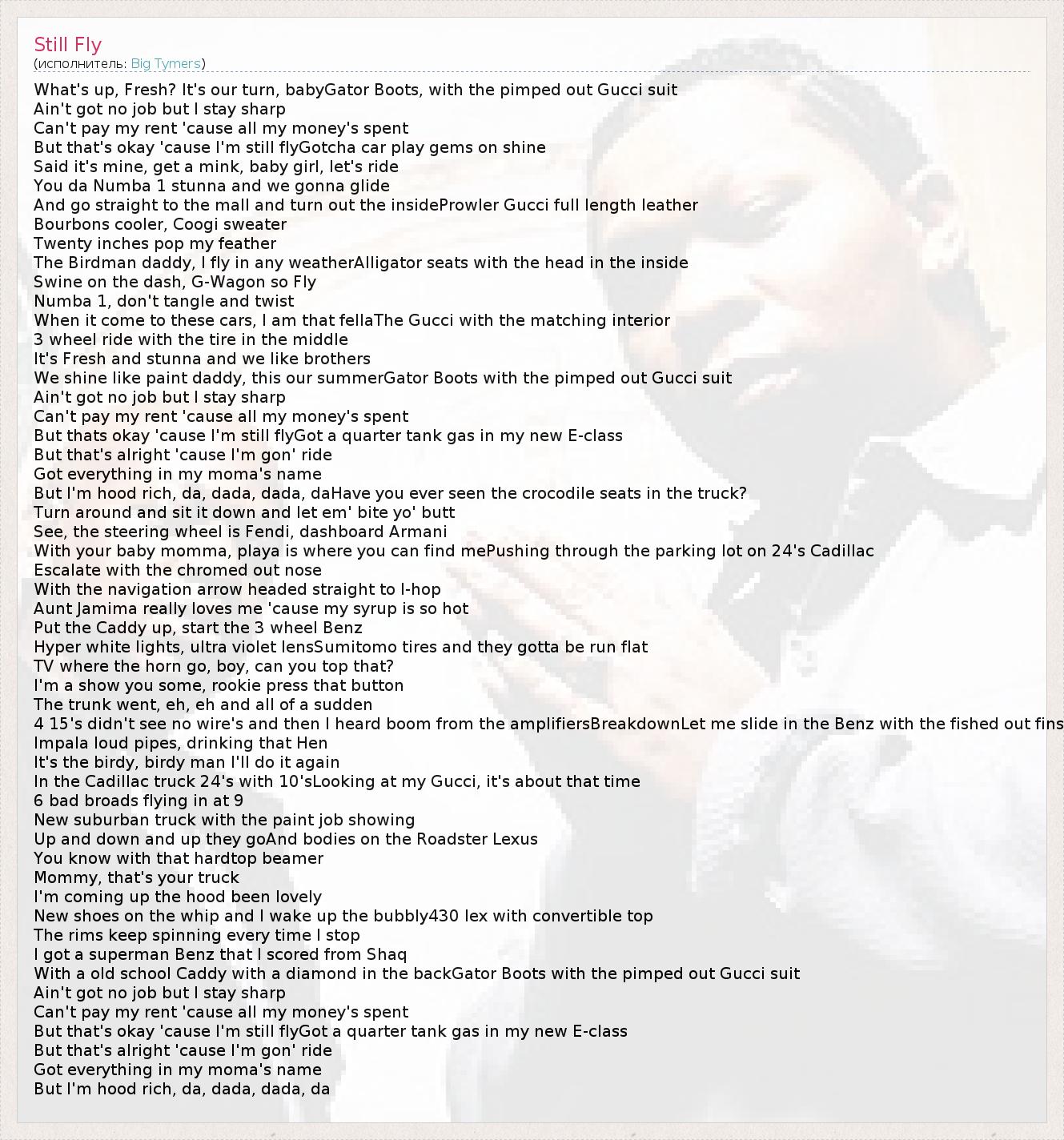 Это интересно:Big Tymers-это группа в состав которой входят Birdman и Manny Fresh. BirdmanБрайан Уильямс, известный нам как Birdman , родился 15 февраля 1969 года в Новом Орлеане. В 1991 году он, вместе со своим братом Рональдом Уильямсом основал лэйбл Cash Money Records.Когда он еще не поражал музыкальную индустрию, ни поклонники, ни даже сам Бэйби не предполагали, что промышленность рэпа позволит ему и Cash Money Millionaires играть... продолжение