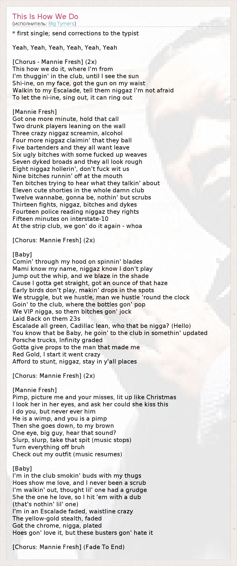 А как ты думаешь, о чем песня "This Is How We Do" ?