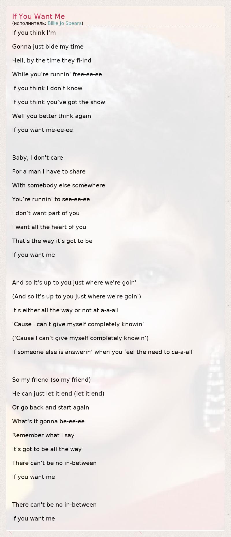 А как ты думаешь, о чем песня "If You Want Me" ?
